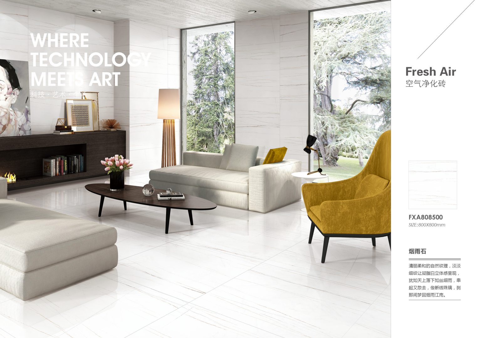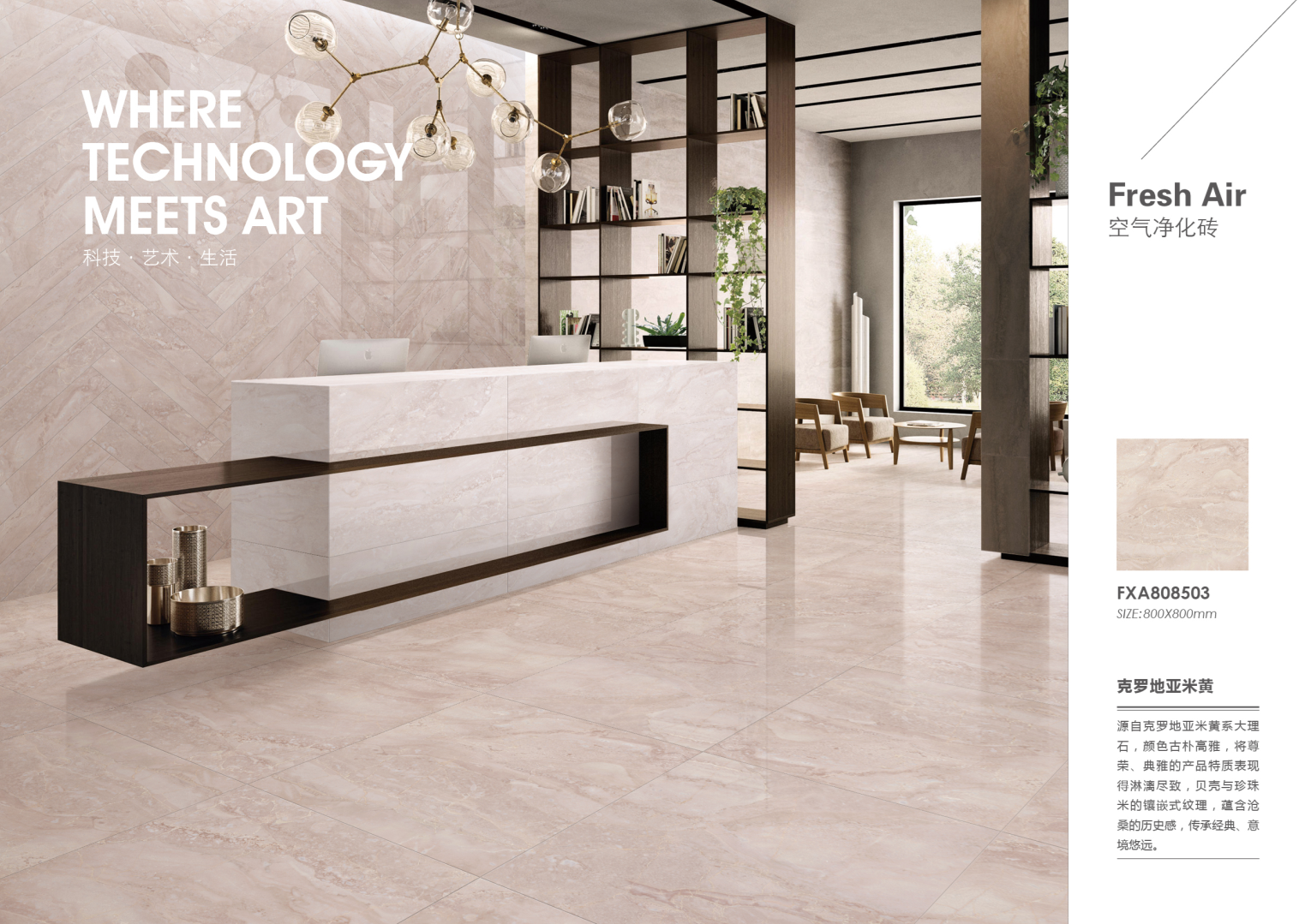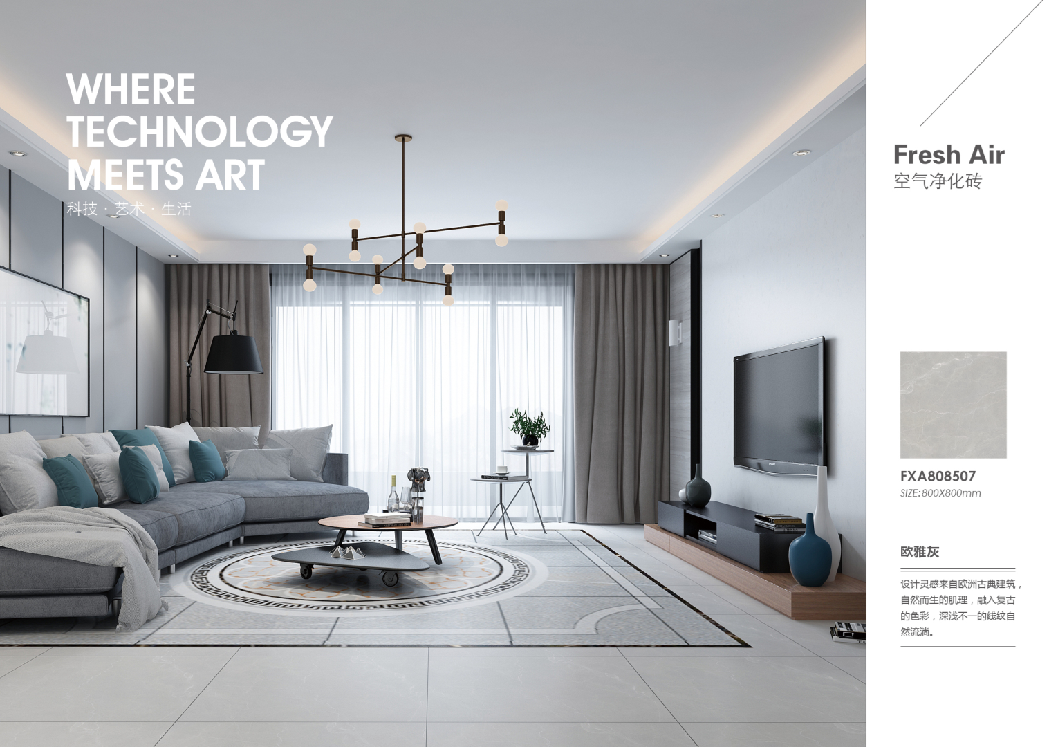 東鵬空氣凈化磚將科技與自然完美融合,以逼真的裝飾效果、優(yōu)越的物理性能以及卓越的凈化效果,成為最適合新裝修家庭的寵兒。東鵬致力為廣大消費者提供健康的、理想的家居生活方式。