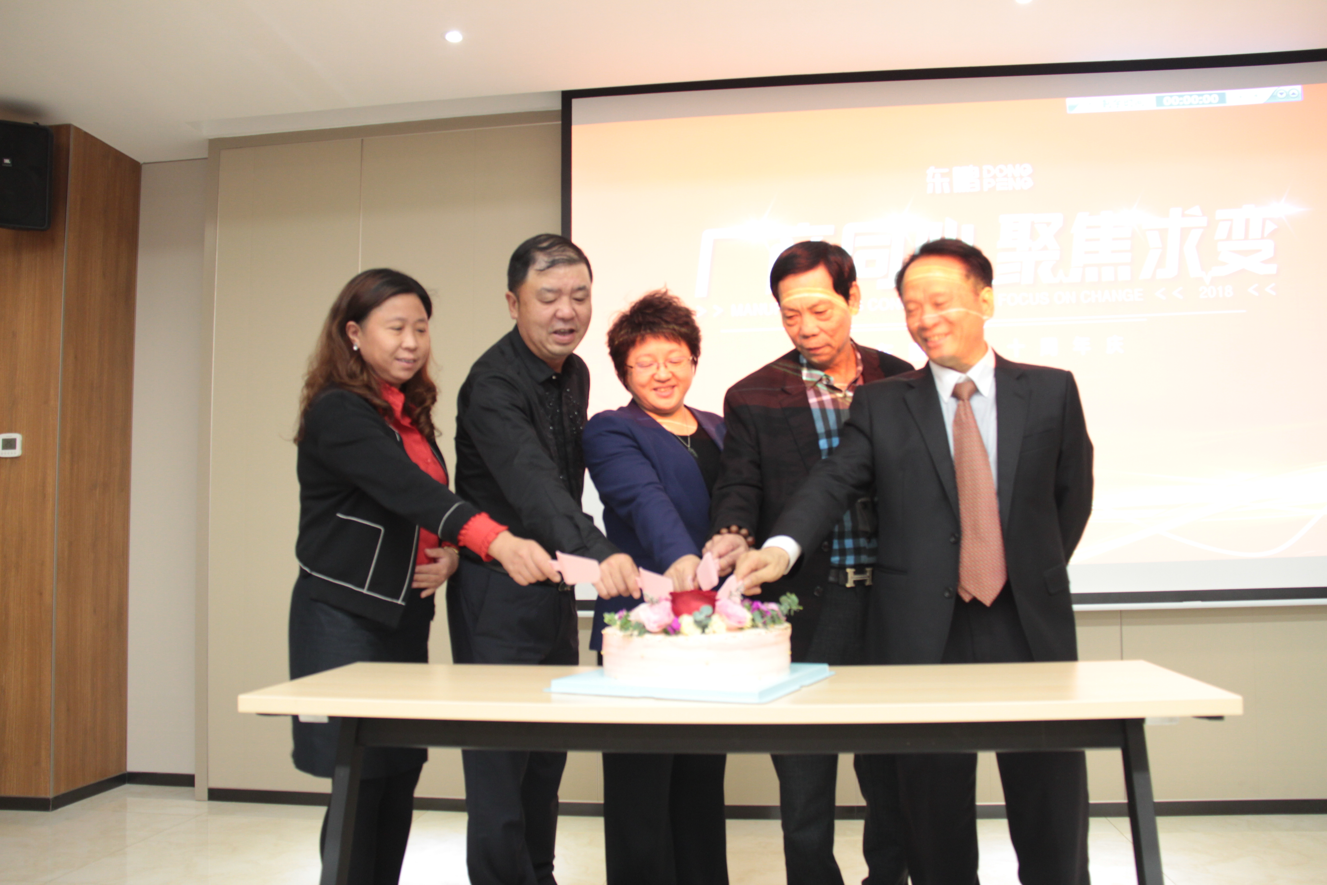 最后,東鵬控股董事長(zhǎng)何新明與東鵬瓷磚全國(guó)總商會(huì)代表共同切蛋糕慶祝“東鵬瓷磚全國(guó)總商會(huì)十周年快樂。”