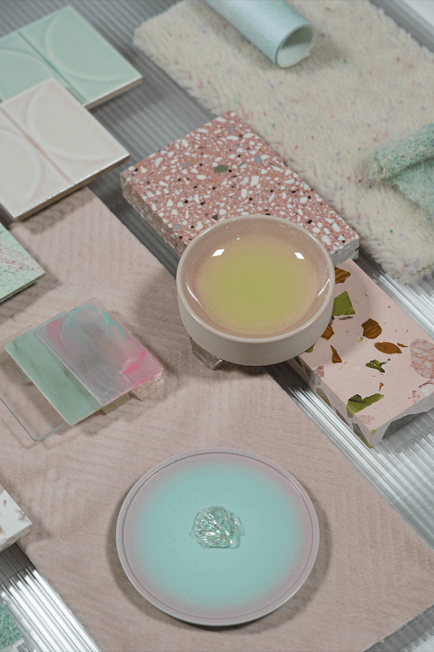 同期,東鵬新材攜生態(tài)石、生態(tài)軟瓷亮相Re:Materialize材料美學(xué)趨勢展。策展團(tuán)隊(duì)融合多領(lǐng)域材料元素,呈現(xiàn)62塊材料氛圍靈感板,通過材質(zhì)碰撞與設(shè)計(jì)語言,為跨領(lǐng)域設(shè)計(jì)提供兼具美學(xué)價(jià)值與創(chuàng)新可能的實(shí)踐參照。基于此,東鵬新材將其產(chǎn)品轉(zhuǎn)化為直觀的視覺語言融入靈感板,借材質(zhì)肌理與色彩搭配,展現(xiàn)可持續(xù)材料突破功能邊界,以先鋒設(shè)計(jì)詮釋報(bào)告主題精神,為綠色設(shè)計(jì)提供從材料到場景的全維解決方案。